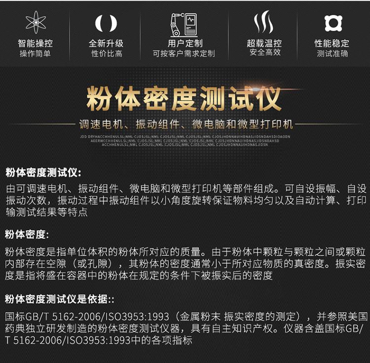 振實密度測試儀由計數(shù)系統(tǒng)、控制系統(tǒng)、驅動機構、執(zhí)行機構、微型打印機以及附屬備件等組成,具有操作簡便、經久耐用、測試準確等特點,適用于非金屬粉、金屬粉體、制藥、化工、電池、